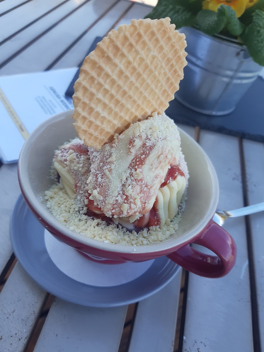 The menu at Jakobs Genusswerkstatt is a playground for dessert lovers. Their Spaghetti-Eis is an absolute showstopper, perfectly combining creamy vanilla ice cream extruded to mimic spaghetti, topped with luscious strawberry sauce and a sprinkle of white chocolate shavings. Pair it with a rich, velvety cappuccino for a classic indulgence, or opt for the Riesenwaffel, a massive waffle loaded with fresh fruits, chocolate, and whipped cream that’s impossible not to smile at. Every dessert is served with attention to detail, and it’s easy to see why regular visitors rave about the quality and presentation in their reviews.